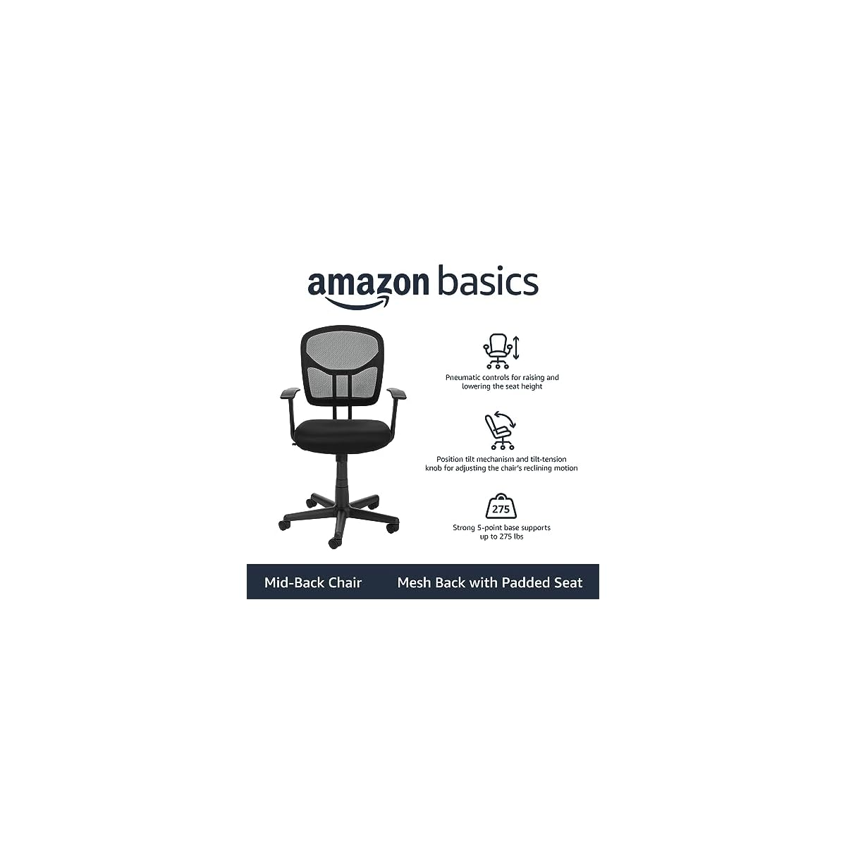 The Amazon Basics Mesh Mid-Back Office Desk Chair is designed for maximum comfort and productivity.