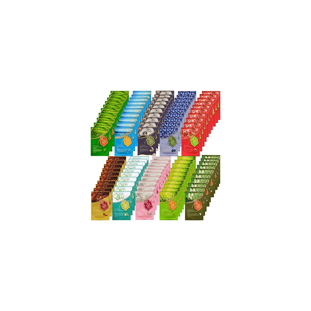 10 Types: Aloe Vera, Aqua, Black Pearl, Blueberry, Collagen, Cucumber, Ginseng, Green Tea, Houttuynia Cordata (Herb), Pine Mushroom