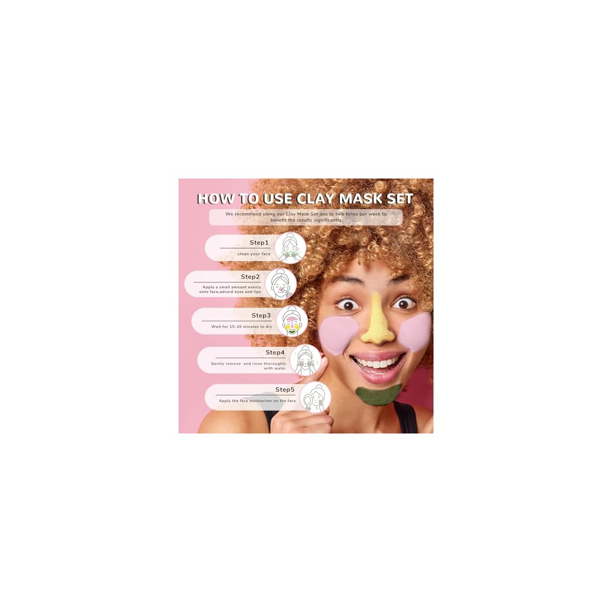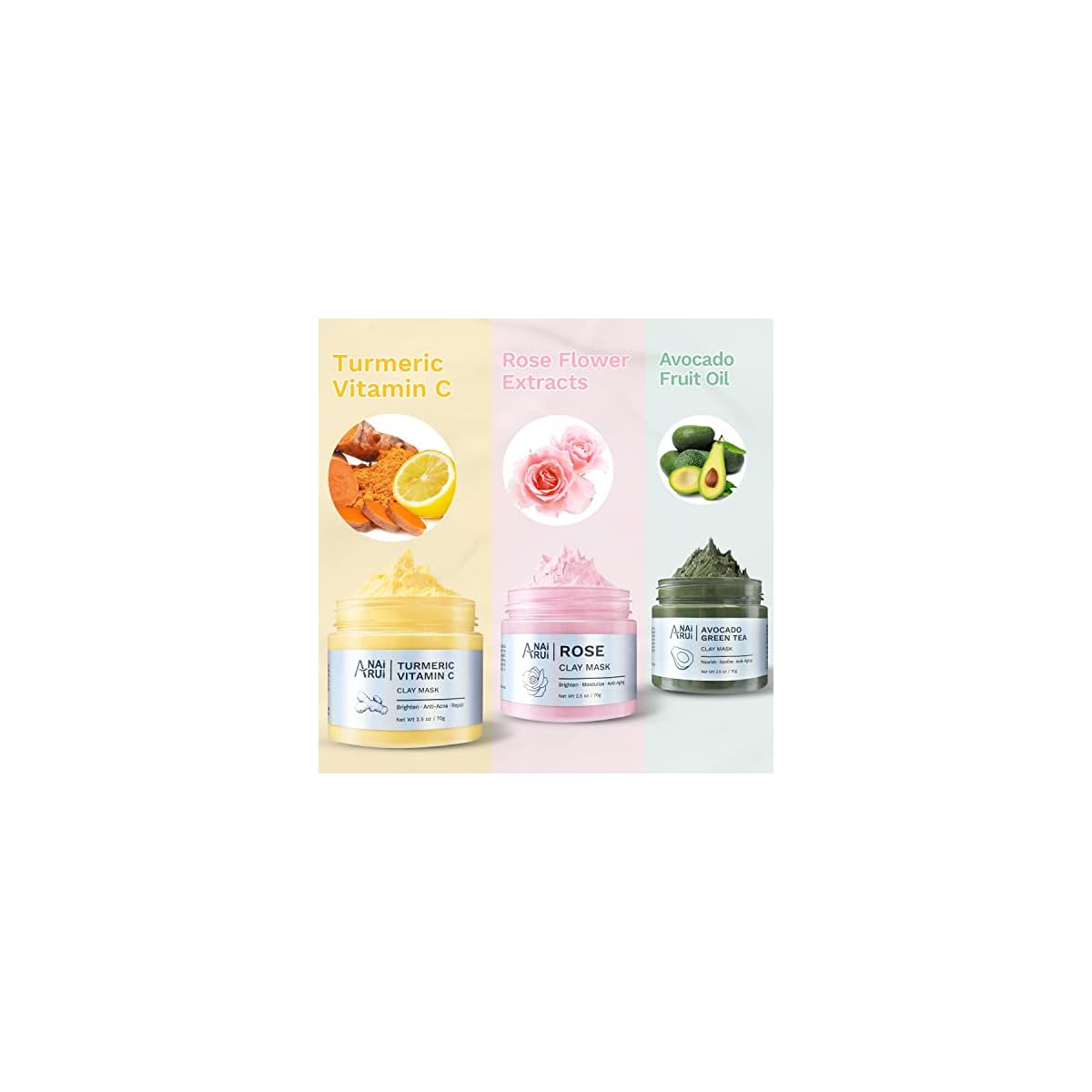 ANAI RUI SPA Facial Mask Set includes Turmeric Vitamin C Clay Mask, Rose Clay Mask, and Avocado Green Tea Mud Mask for a complete facial SPA experience.