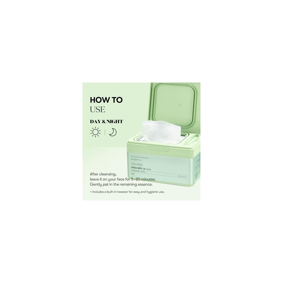Transform your skincare routine with VT COSMETICS CICA Reti-A Daily Mask featuring a high-purity 99% concentration of retinol complex.