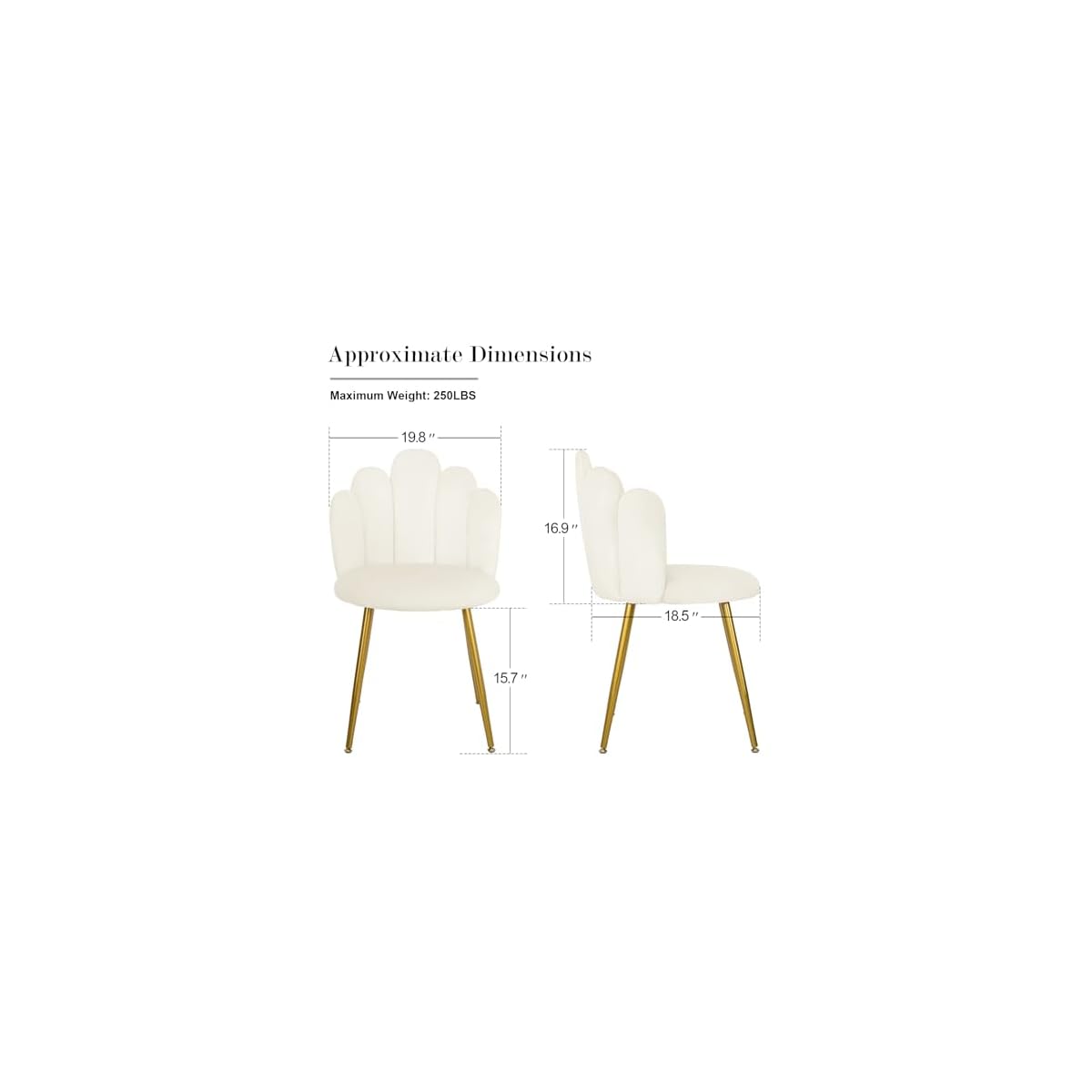 The elegant backrest of living room chair is seashell-shaped for a luxurious look, while the gold-finished tapered metal legs provide a retro flair.