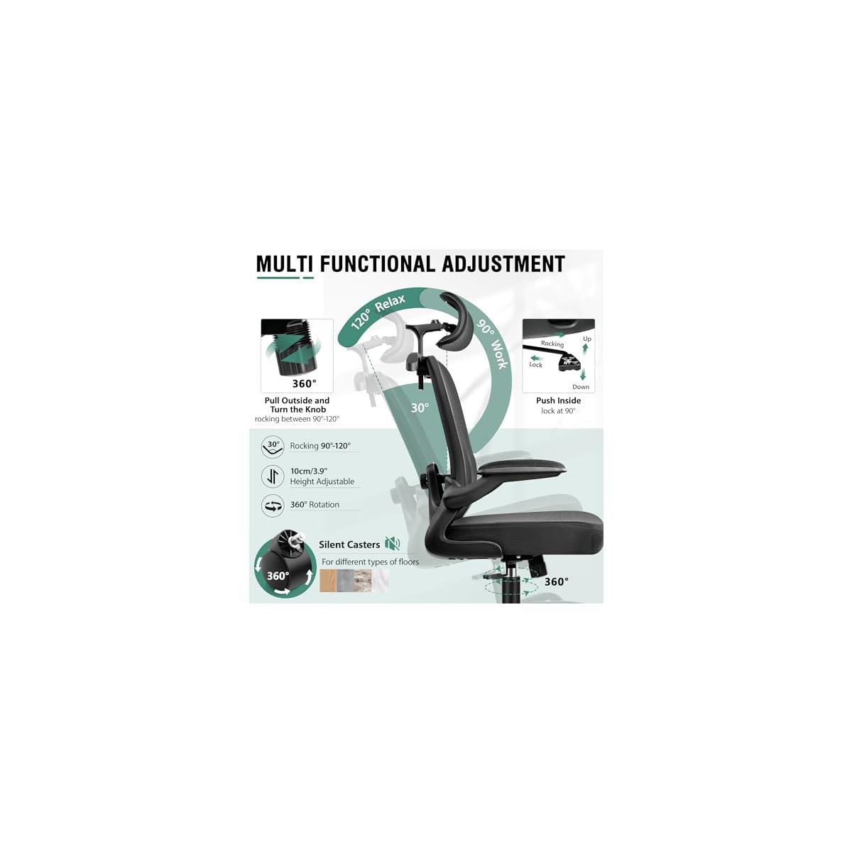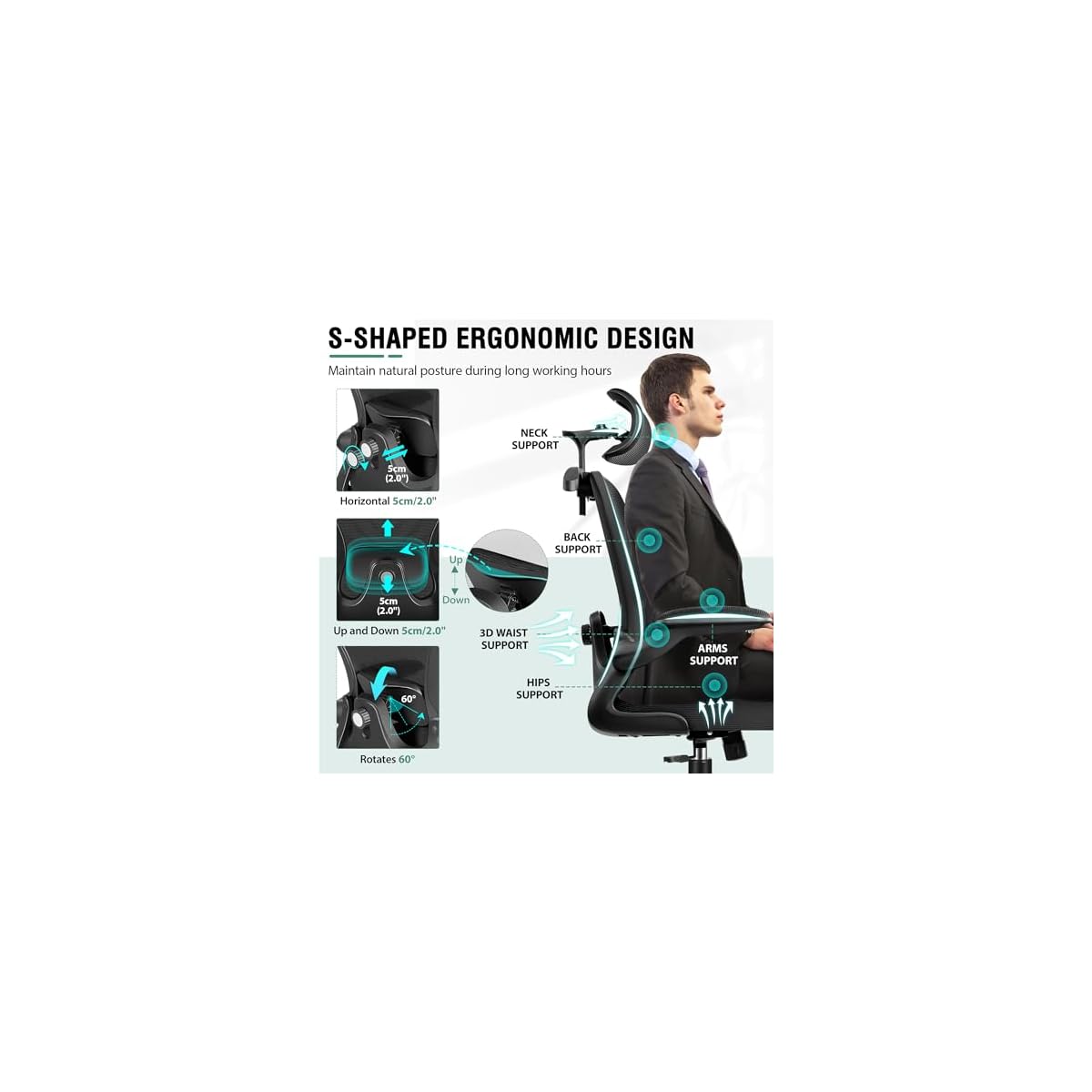 The AtHope ergonomic office chair provides personalized support with adjustable lumbar support, headrest, and flip-up armrests. Provides 5 support points (head/back/waist/hips/legs/arms) always maintain a healthy sitting posture, and balancing comfort and functionality.