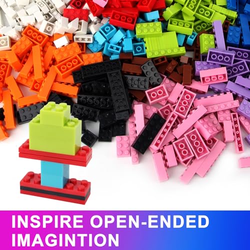 The building bricks set is compatible with all major brands, allowing kids to mix and match with other building bricks they have.