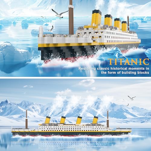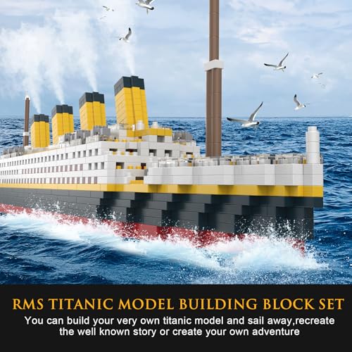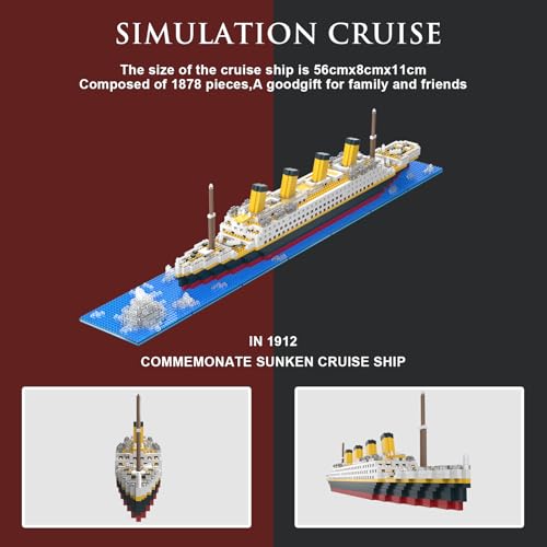 HIGH-QUALITY MATERIALS - The Titanic building block set is made of ABS plastic, the building block parts have no burrs, feel smooth, with unparalleled precision and vivid details, bringing a seamless building experience. The Titanic ship building toy is made of 1878 micro building blocks, with building blocks as small as 4mmx5mm. The smaller the building blocks, the better the construction effect. Titanic toy model ship size: 22.05 inches X 3.15 inches X 4.33 inches