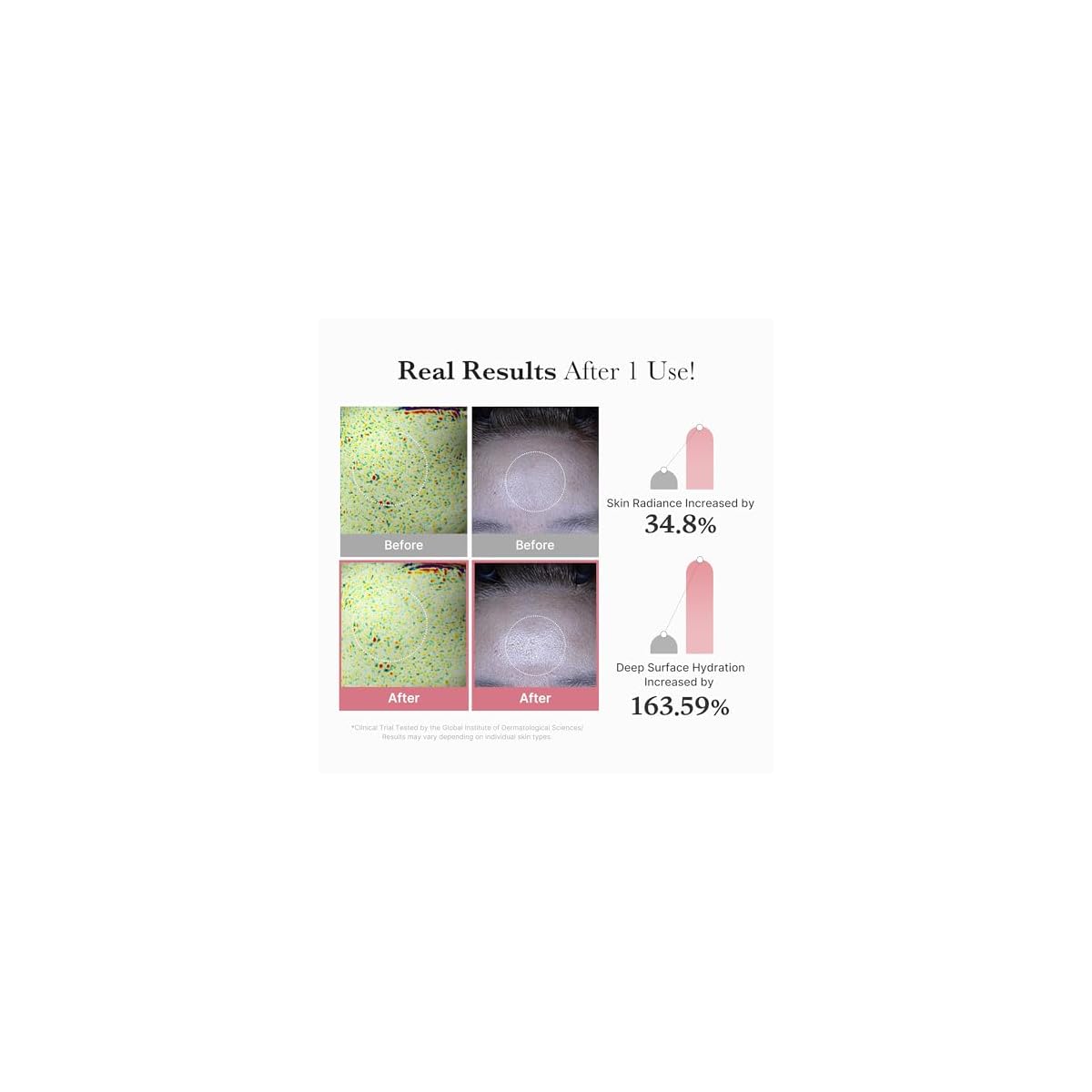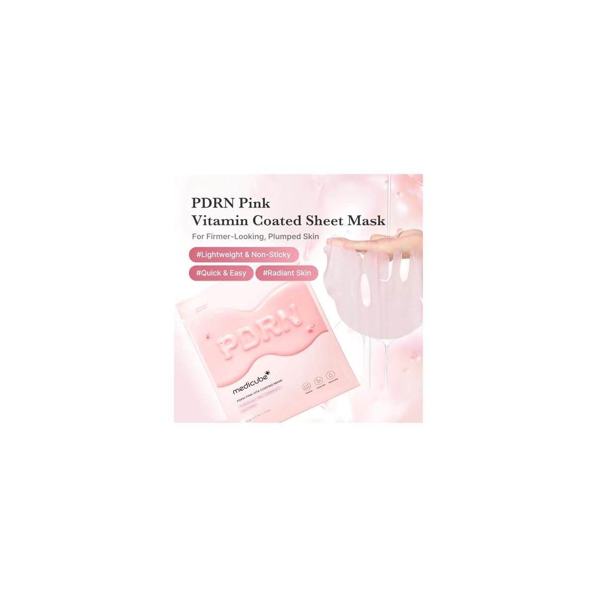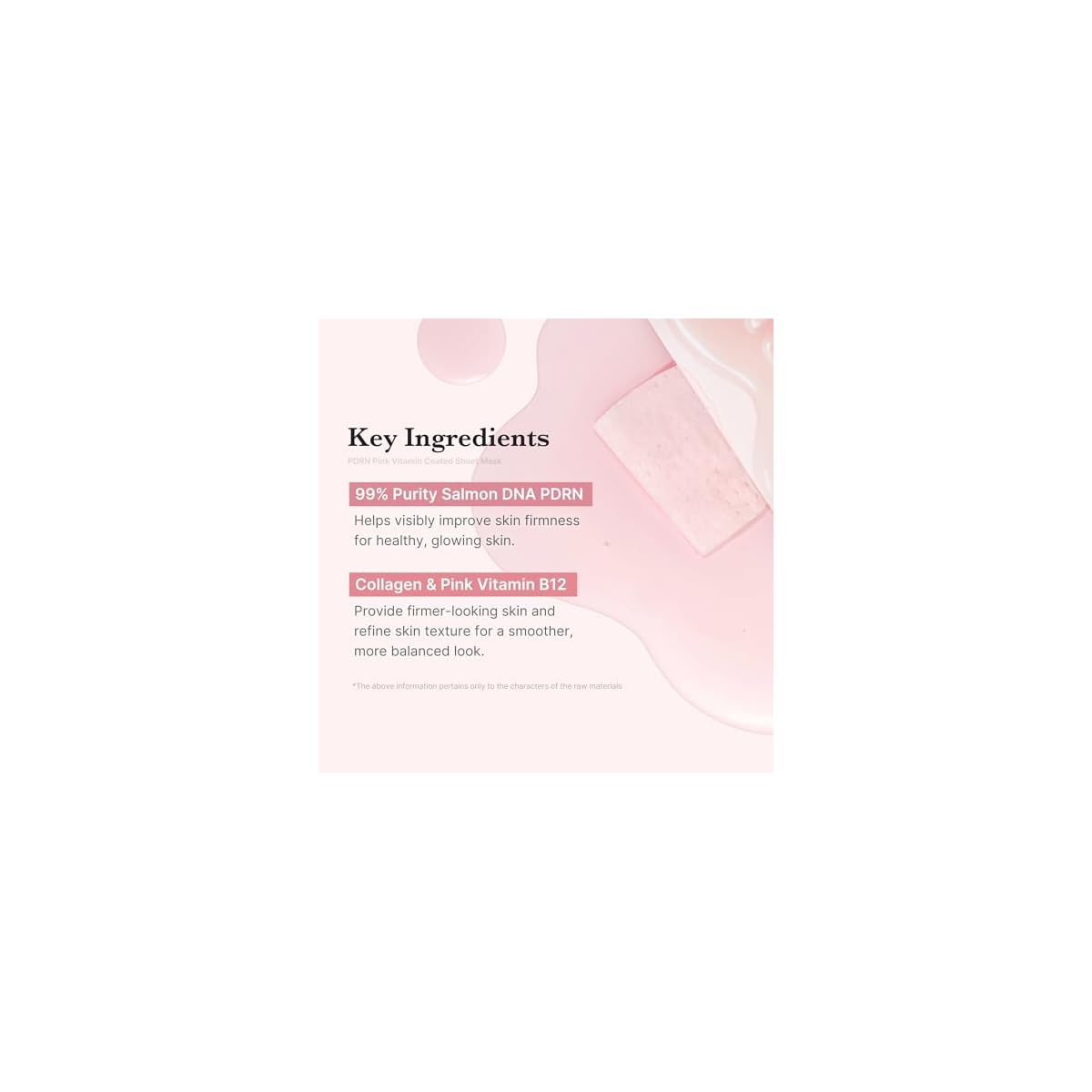 Advanced Formulation: Enriched with 99% pure Salmon DNA PDRN, collagen, and Vitamin B12 in a pink sheet mask for a plump, glowing complexion. PDRN enhances skin firmness, while hydrolyzed collagen and Vitamin B12 are effectively absorbed to improve elasticity and refine the skin's appearance.