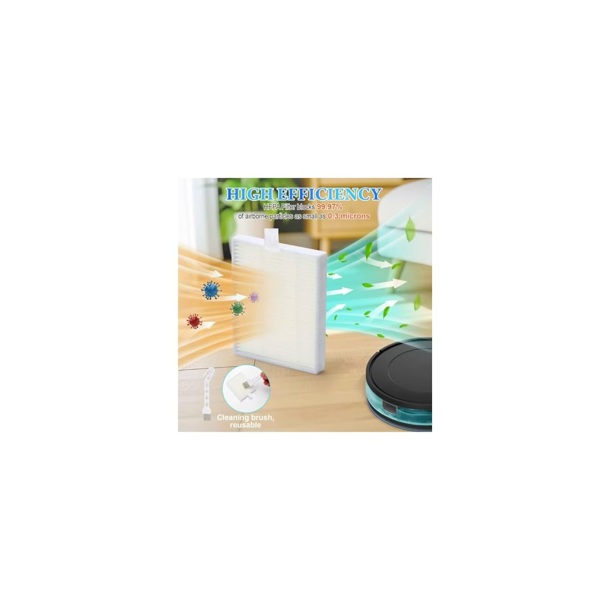 Includes 2 Roller Brush, 4 Hepa Filters, 4 Side Brushes, and 1 Cleaning Brush.